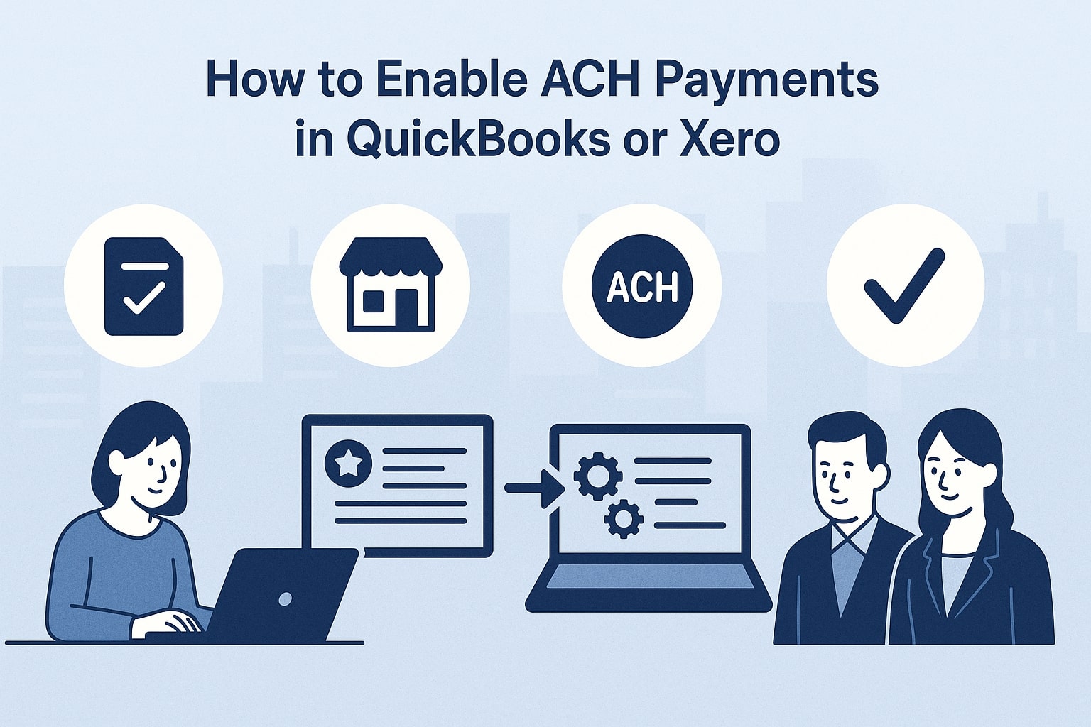 Accepting ACH payments in your accounting platform is one of the simplest ways to speed up receivables, cut card fees, and make cash flow more predictable. This guide walks you—step by step—through enabling ACH payments in QuickBooks Online and Xero for the US market.